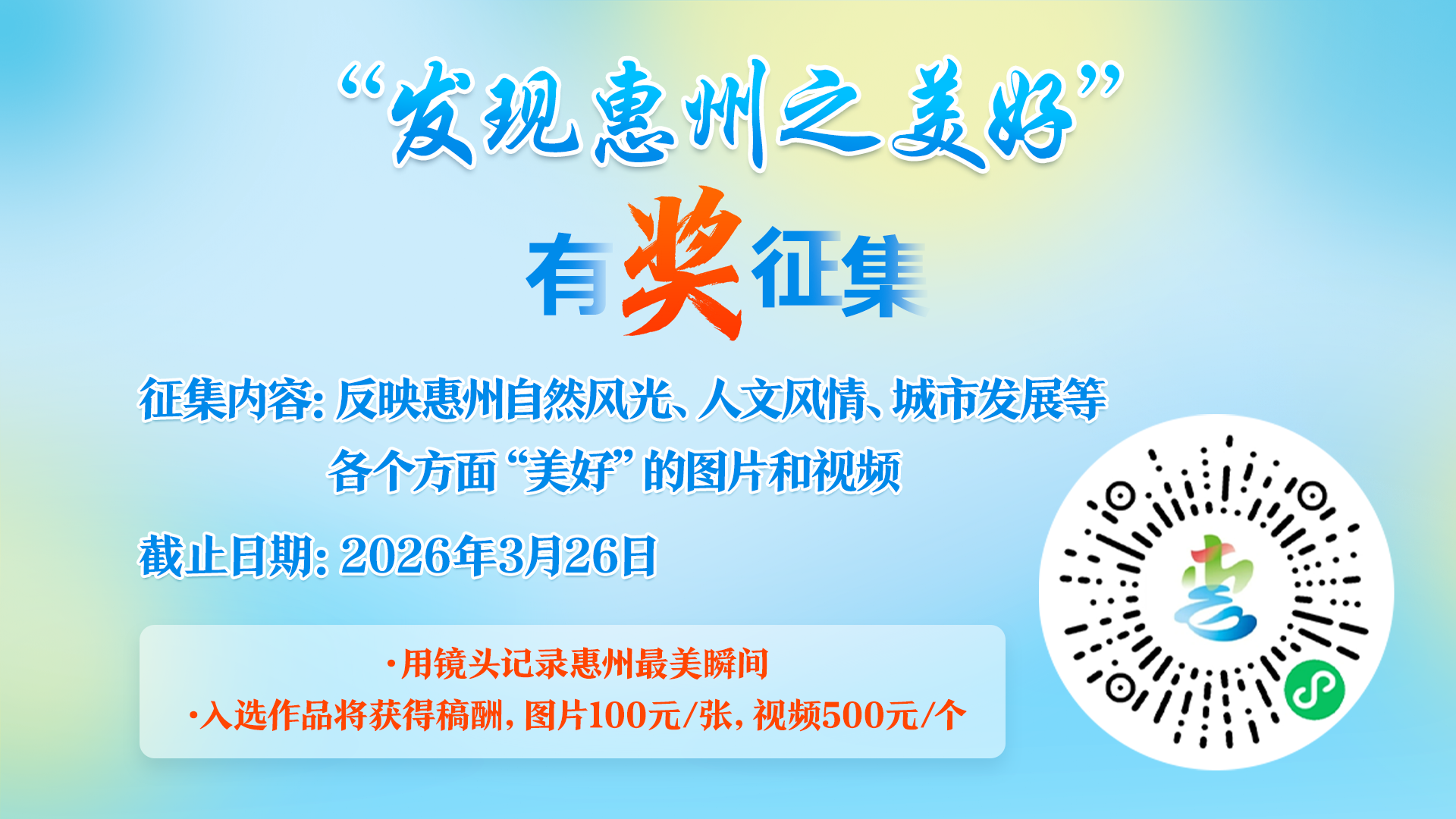 • 現金獎勵!全民有獎征集,發現惠州之美好!